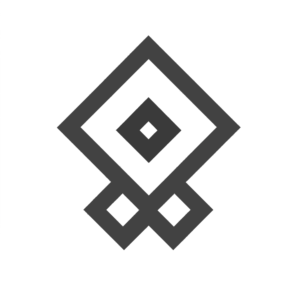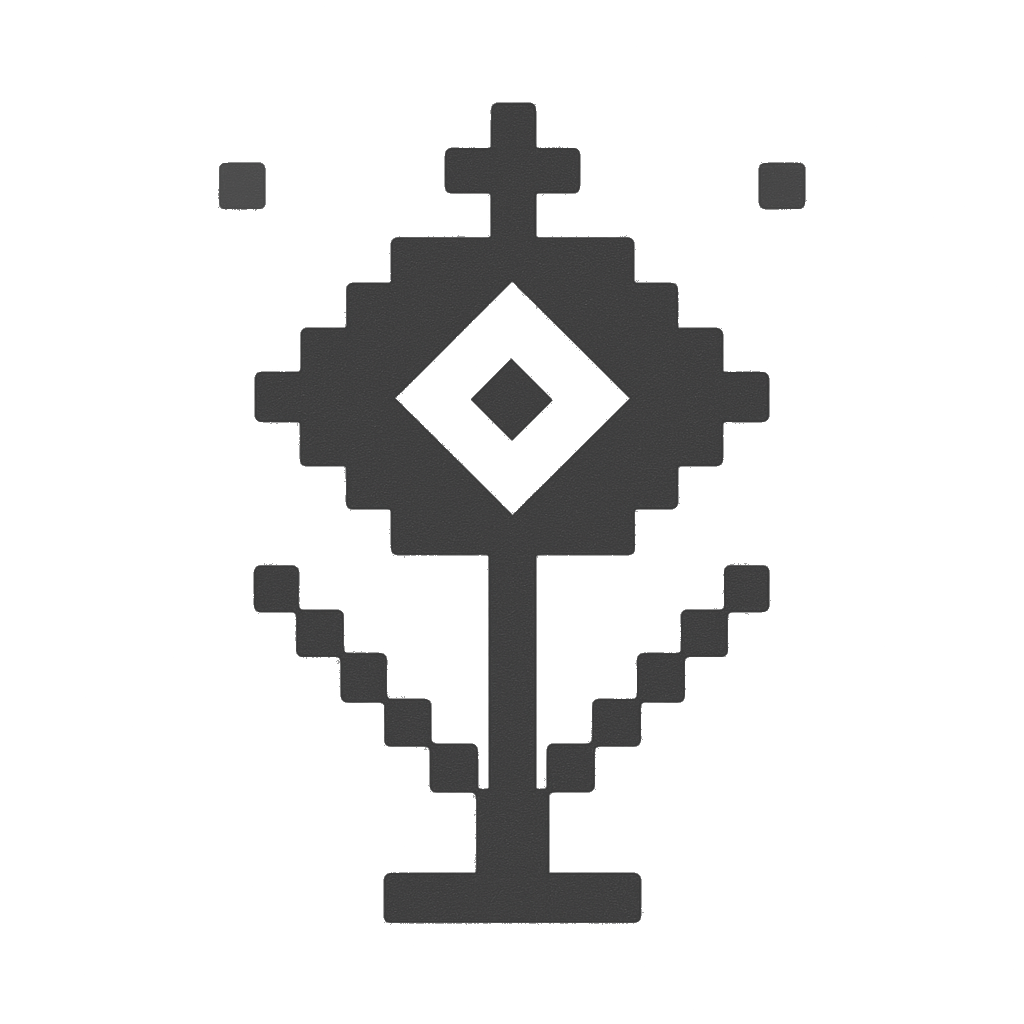 Die Raute mit einem Punkt im Zentrum symbolisiert die Seele des Ahnen. Die Raute in der Raute steht für das Gedächtnis, das in uns weiterlebt. Die zwei kleinen Rauten unten - wir und unsere Kinder, die den Weg fortsetzen.